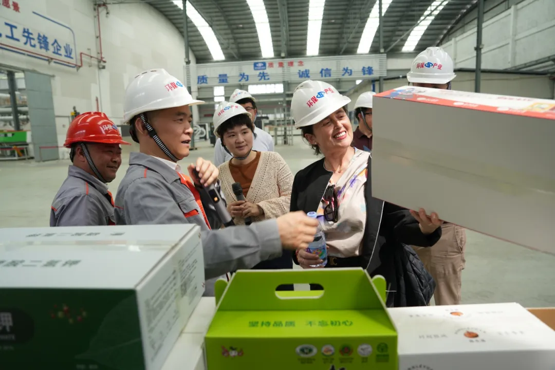During the exchange, Alzbeta Klein and her delegation visited the pilot plants for impurity removal, depolymerization and classification of 15,000 t/a high-purity anhydrous gypsum (crystal-transformed gypsum), the production lines of anhydrous gypsum masterbatch and anhydrous gypsum packaging boxes, as well as the 400,000 ㎡/a high-precision gypsum block production line of the Group’s Green Environmental Protection Company. They also learned about the "1468" project at the Fuquan base via video presentation. Through on-site inspections, Alzbeta Klein and her delegation fully affirmed the systematic achievements made by China GPC in the reduction, resource utilization and high-value utilization of phosphogypsum.